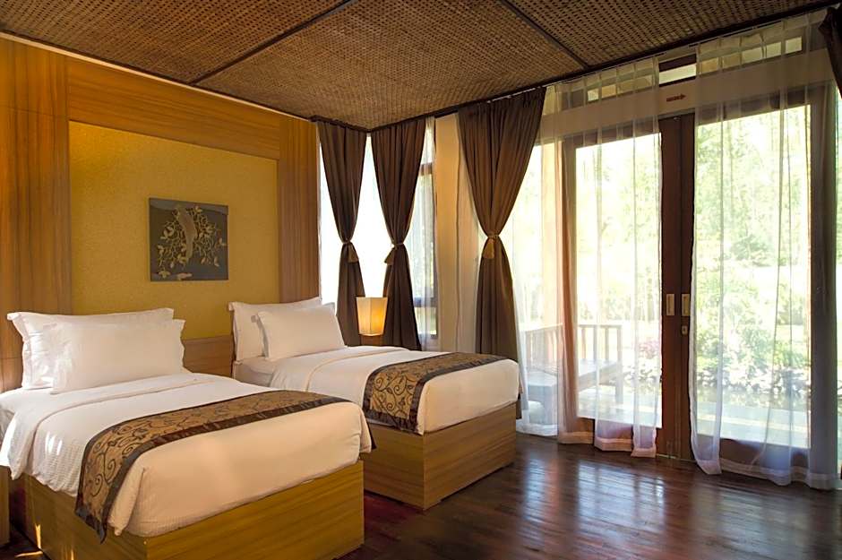 Welcome to Kampung Sampireun Resort & Spa, where your adventure in the stunning Garut countryside begins! Nestled just 7,8 mailia away from the bustling city center, this cozy 3-star resort offers a delightful escape filled with lush landscapes, breathtaking mountain views, and serene lake vibes. With prices starting from an affordable rate, this is your ticket to experience the exquisite charm of Indonesia without breaking the bank.
